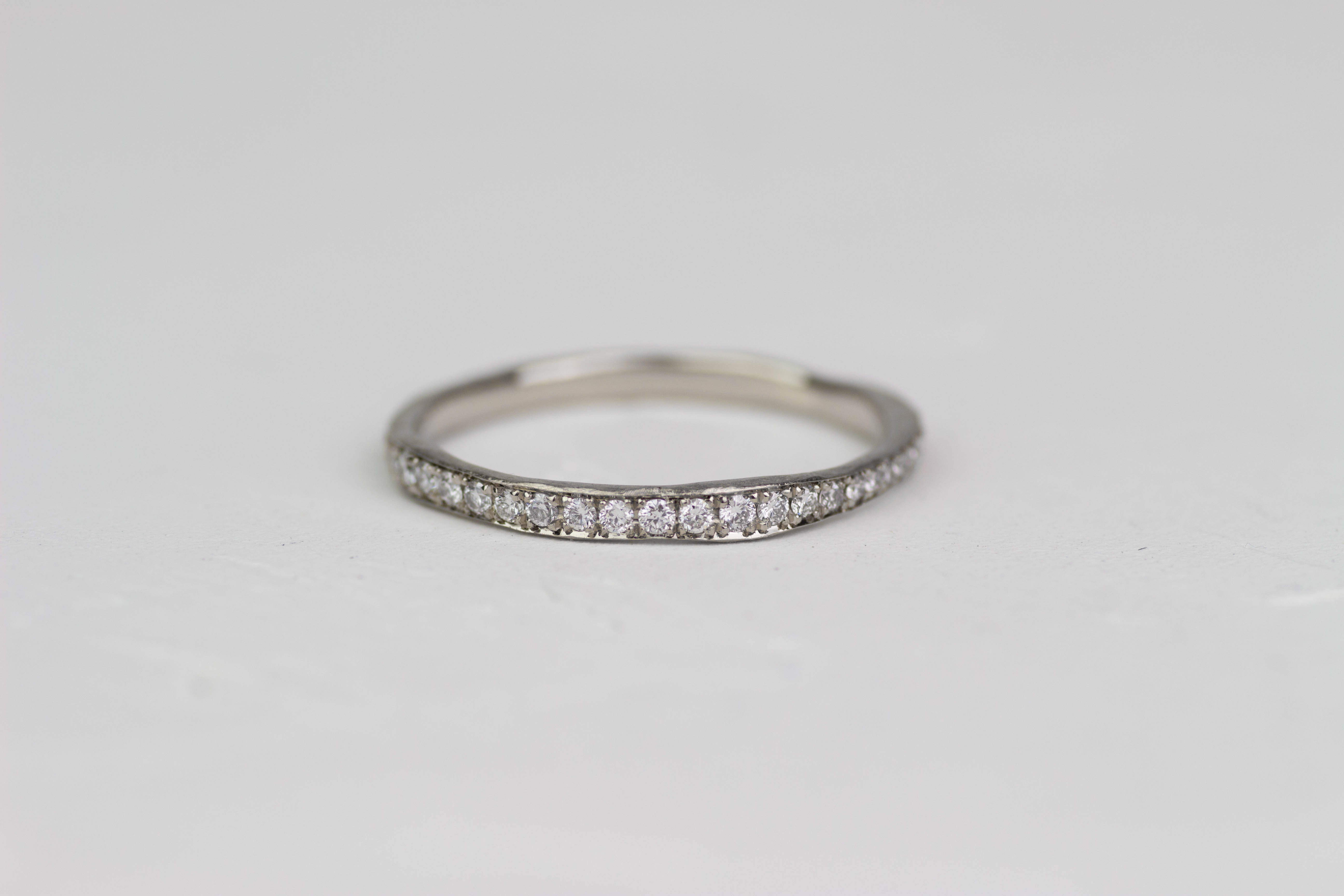 Der „Aqua Memory“ Vorsteckring fängt die Essenz des Wassers ein – mit einer Oberfläche, die an das sanfte Spiel der Wellen erinnert. Die unregelmäßige Struktur gepaart mit den nicht parallelen Außenkanten verleiht diesem Ring einen lebendigen, organischen Charakter.